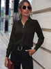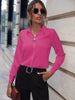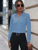 Collared Long Sleeve Blouse with Button Front and Curved Hem