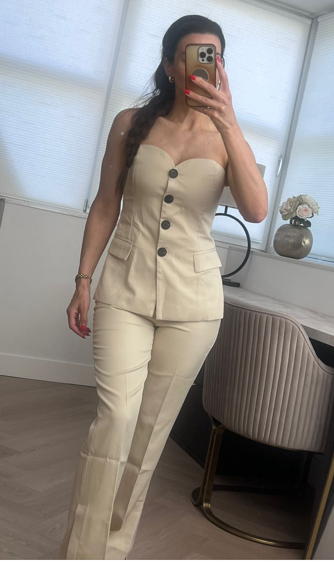 • Silhouette: Fitted bodice, defined waistband, A-line skirt