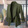 Drape Collar Jacket with Ruched Sleeves and Pointed Hem
