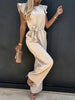 Women's Jumpsuit with Flutter Sleeves, Tie Waist Belt and Wide-Leg Trousers