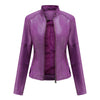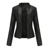 Faux Leather Jacket with Stand Collar and Zip Closure