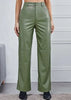 High-Waist Wide-Leg Leather Trousers with Button and Zip Closure