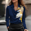Long Sleeve Satin Blouse with Cowl Neckline and Fold-Down Collar