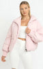 Oversized Short Puffer Jacket with Zip-Up Closure and Ribbed Cuffs