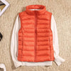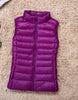 This vest has a high stand collar with horizontal quilting and a full zip closure.