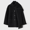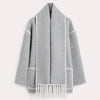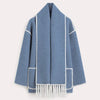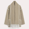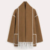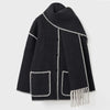Relaxed Jacket with Attached Scarf, Contrast Stitching, and Fringe Trim