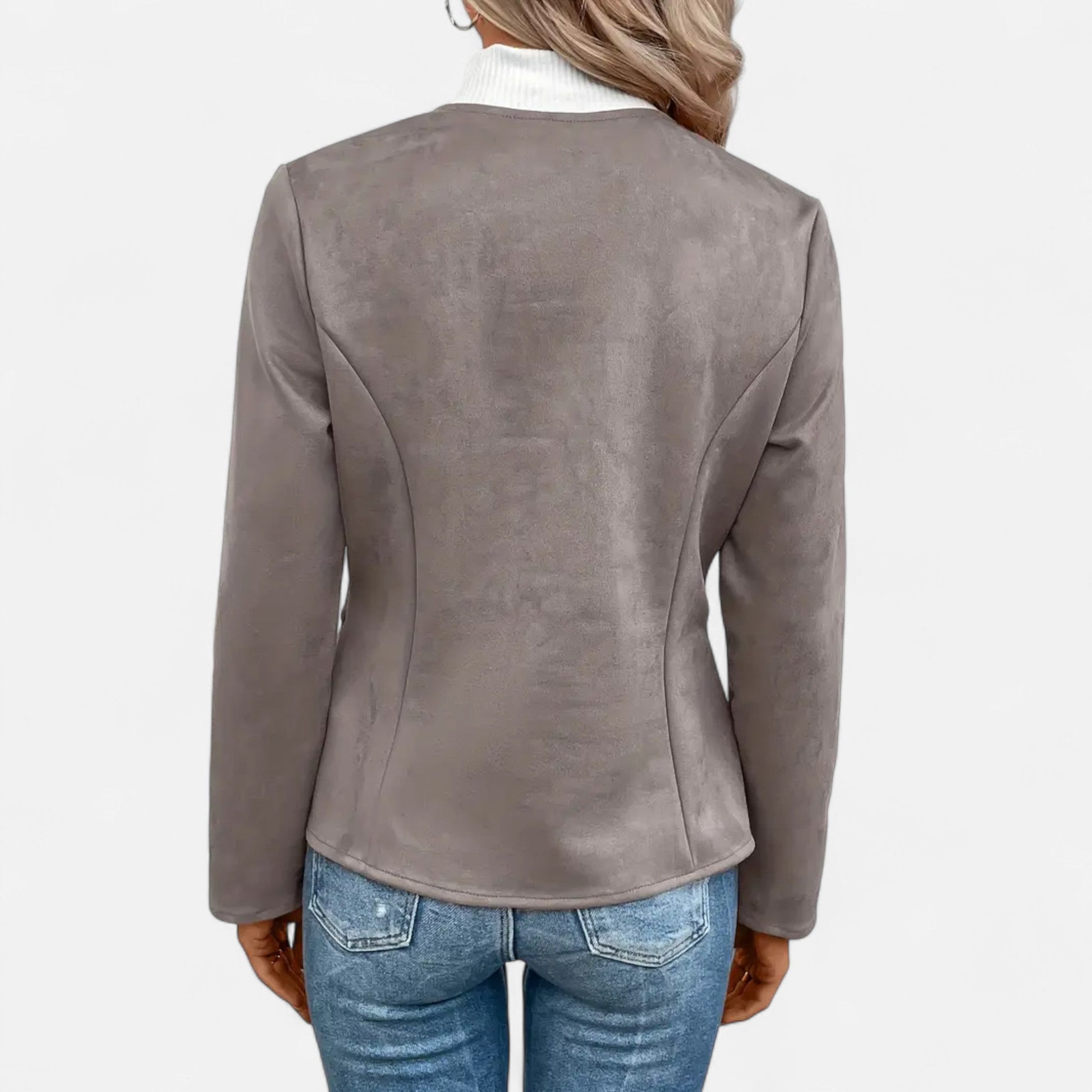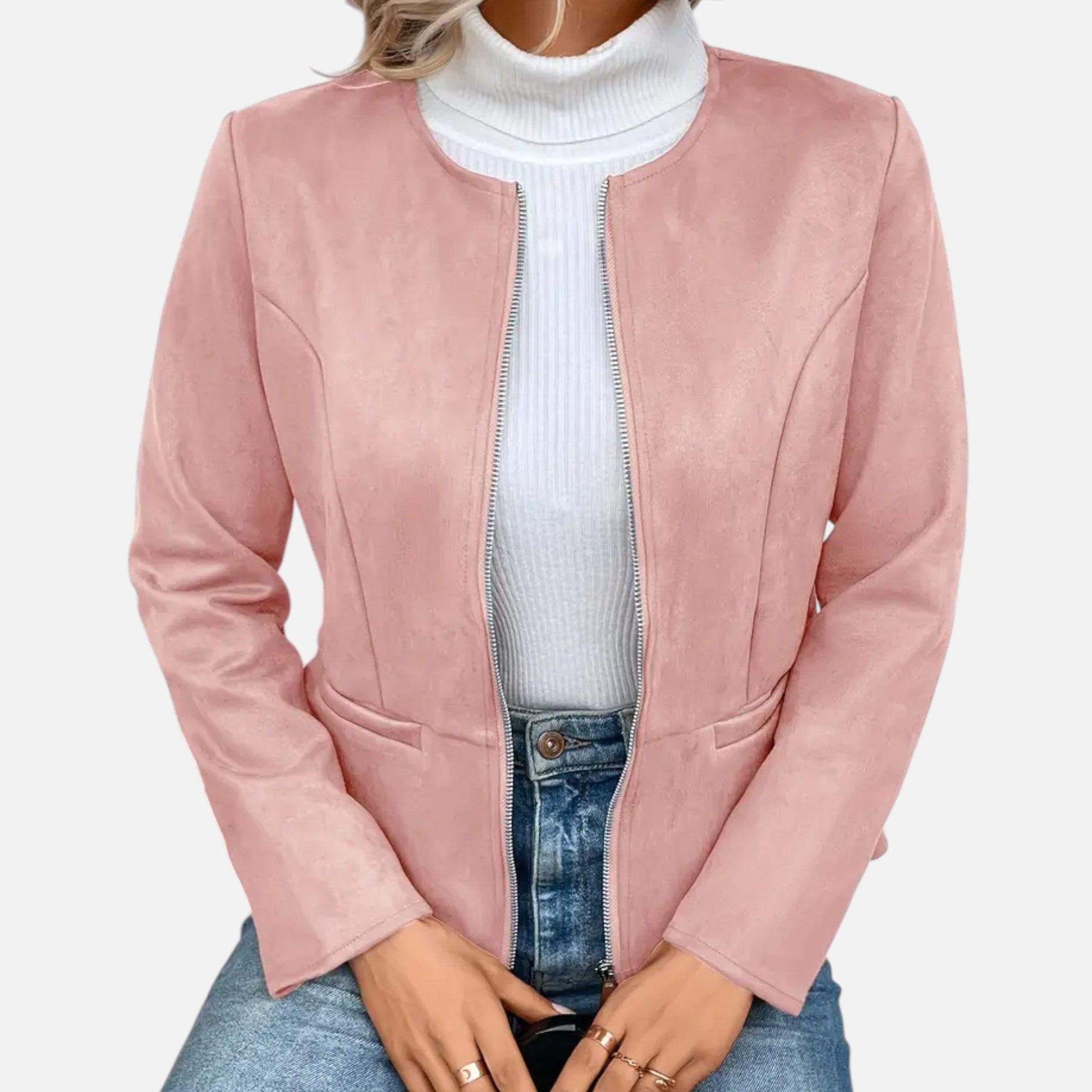 Round Neck Jacket with Zip Closure and Welt Pockets