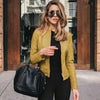 Round Neck Leather Jacket with Gold-Tone Zip Closure and Long Sleeves
